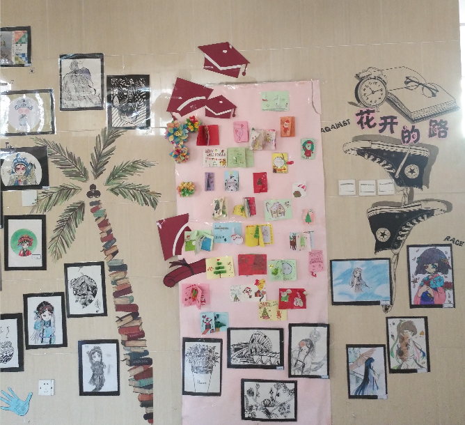 明珠学子写得一手好字,明珠学子画得一幅好画,明珠学子做得工艺品顶呱呱!什么?你不信?那就来我们的金色大厅看一看吧!一幅幅苍劲有力的书法作品、一幅幅栩栩如生的人物素描、一件件精致有品的手工艺品……它们都是出自咋明珠学子之手。相信所有看过这些作品的人都会情不自禁地赞叹,赞叹咱明珠学子的文化修养。